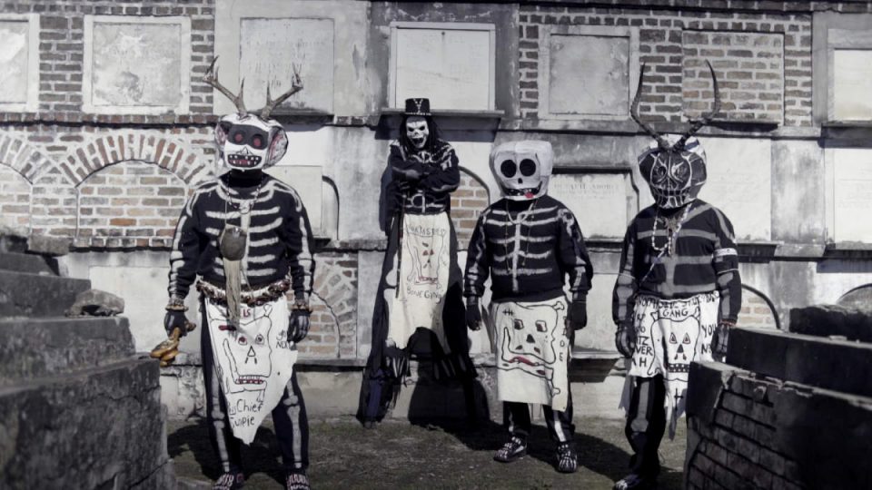 Before dawn in Treme, the North Side Skull and Bone Gang walks. Dressed in hand-painted skeleton suits, they knock on doors and declare, “You next!”